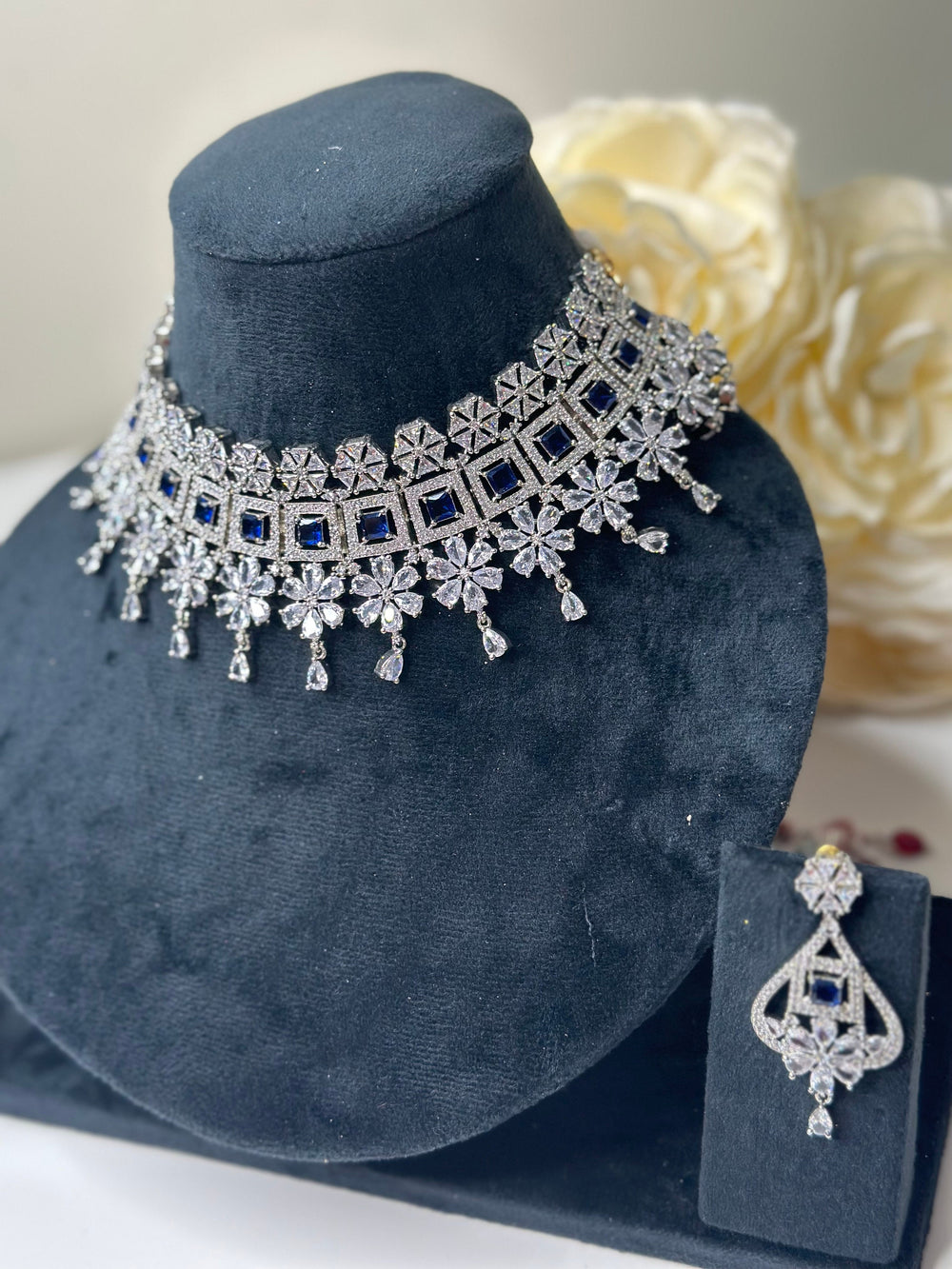 Kashvi Silver Blue CZ Necklace Set