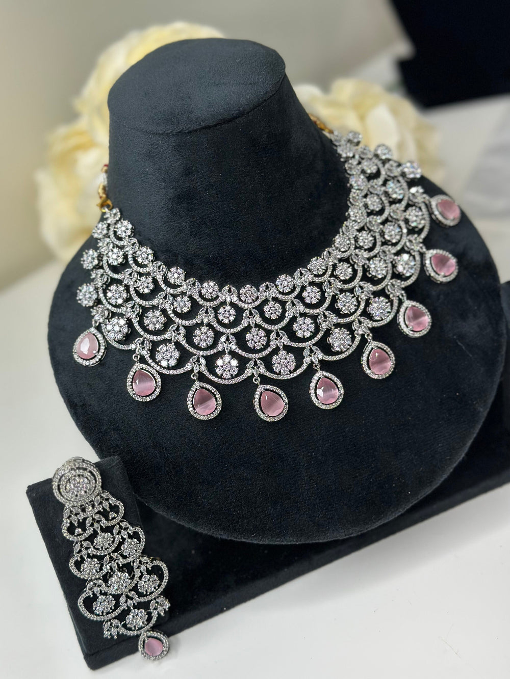 Ridhi Rose Gold Pink CZ Necklace Set