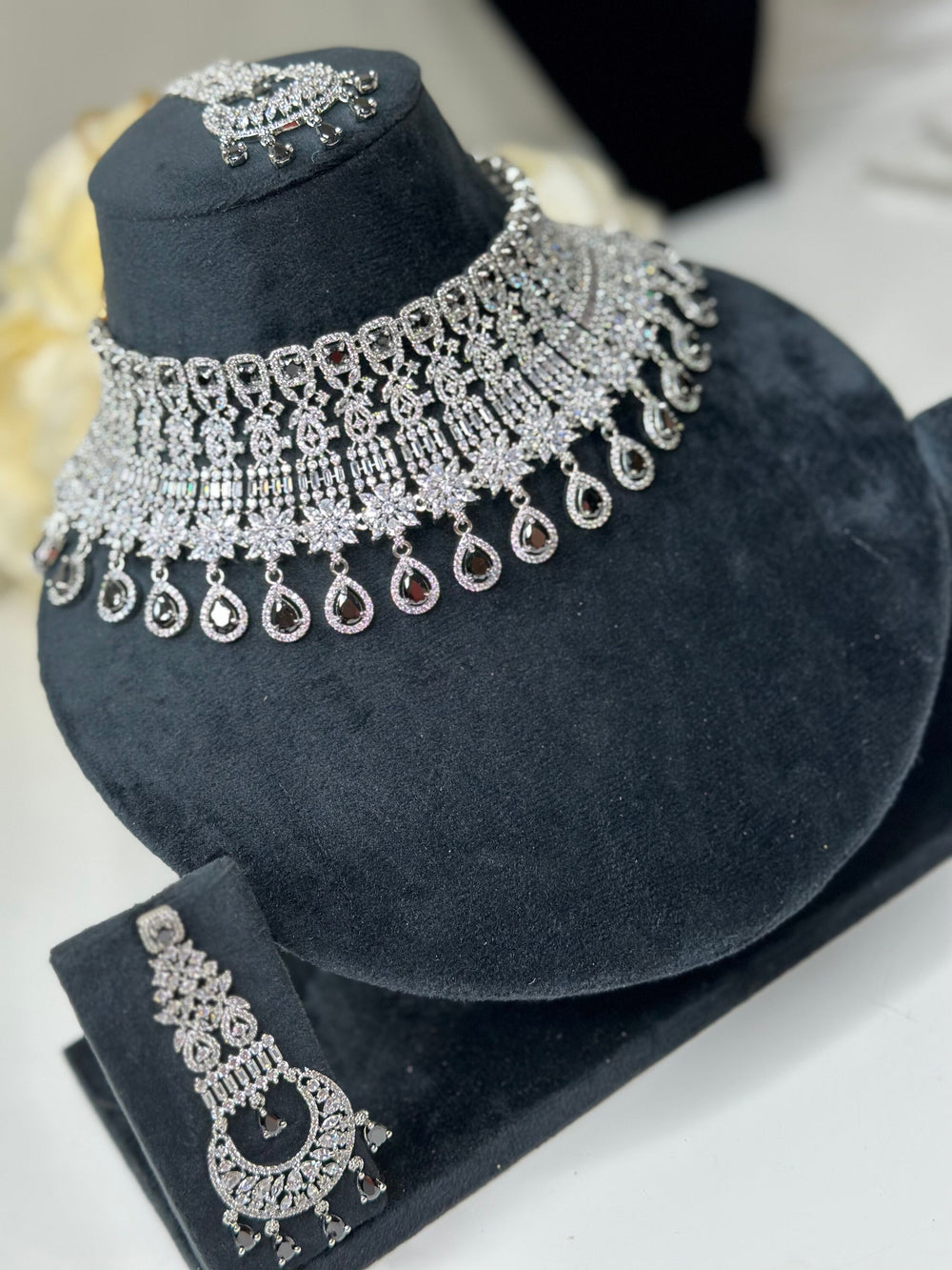 Mimi CZ Silver Black Necklace Ad Set027