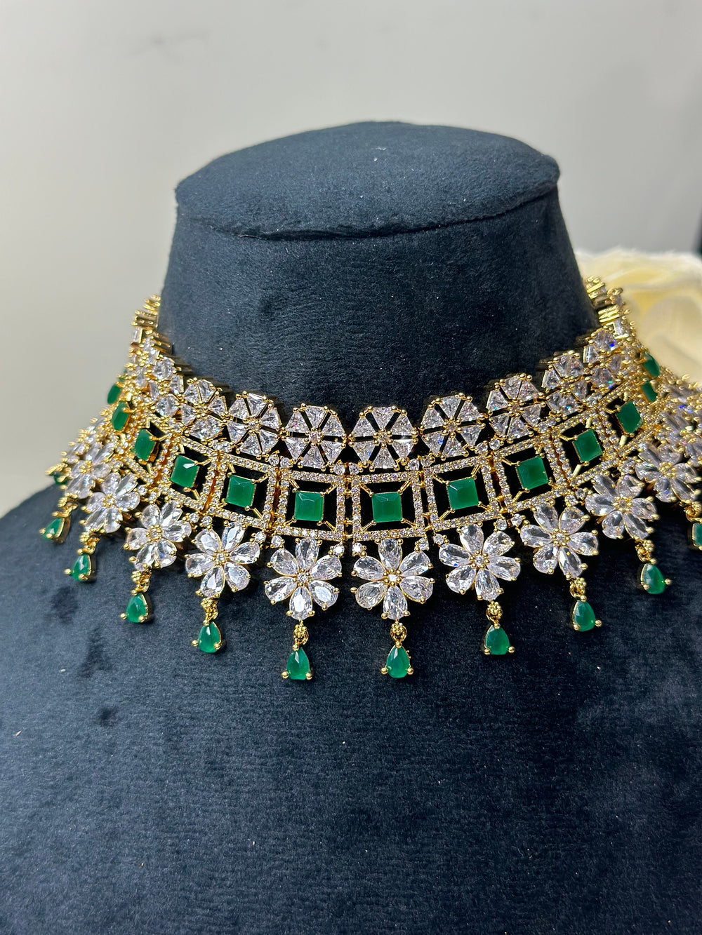 Kashvi Gold Green CZ Necklace Set