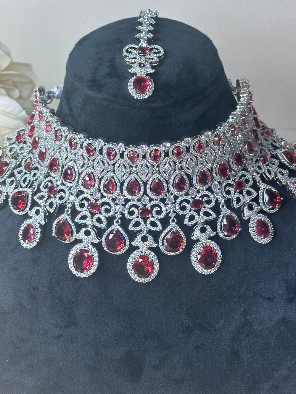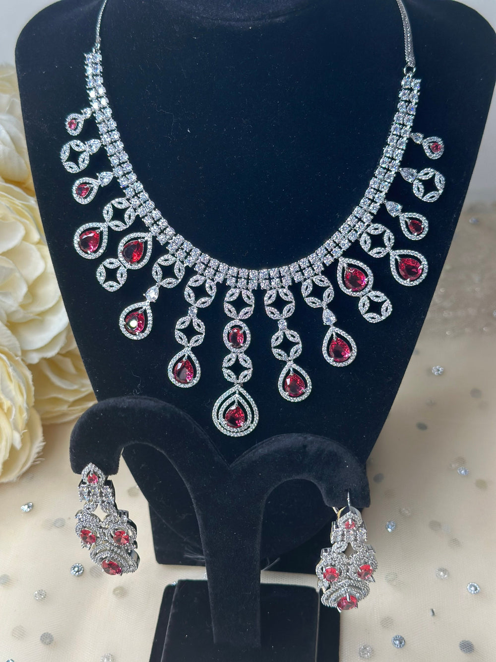 Naila Red CZ Necklace Set