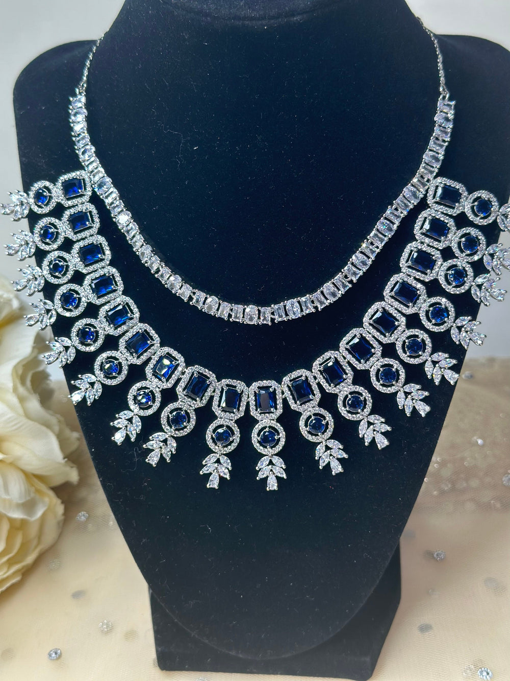 Mallika CZ Blue Necklace Set