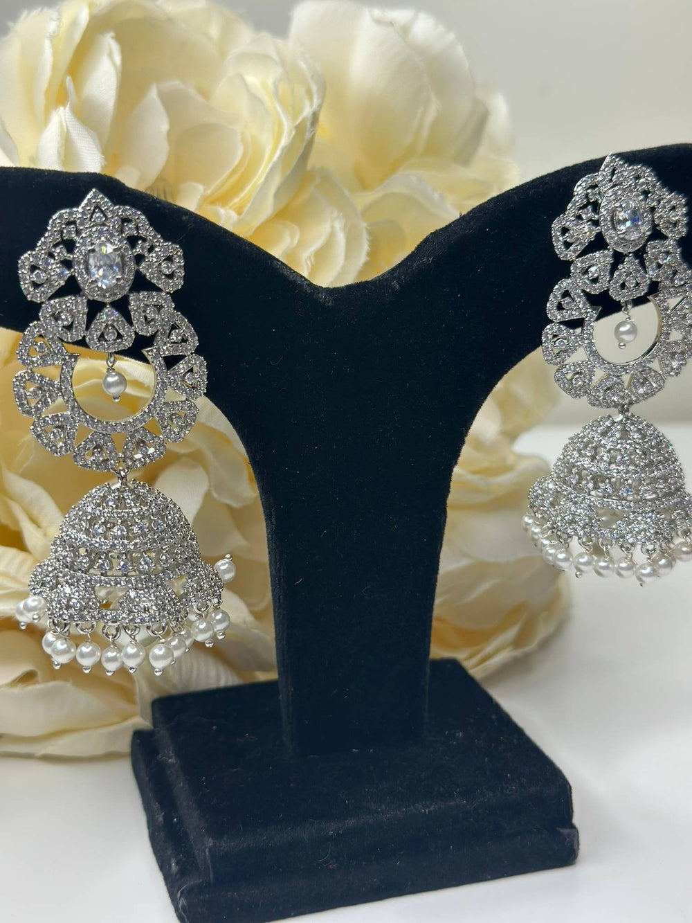 Izhaar Silver Jhumka AD Earring Set