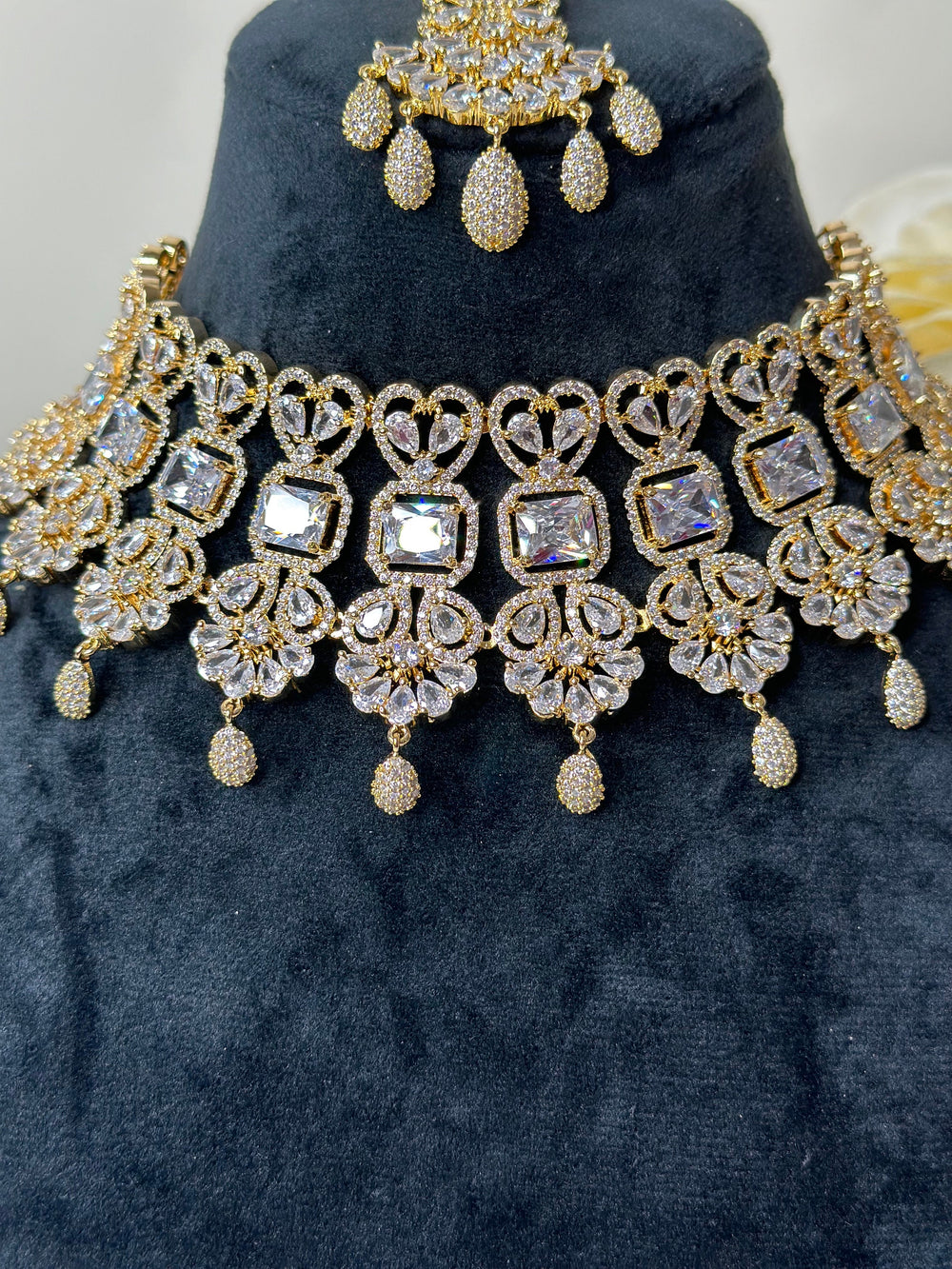 Ava CZ Handcrafted Gold Plated Necklace Set AD Set003
