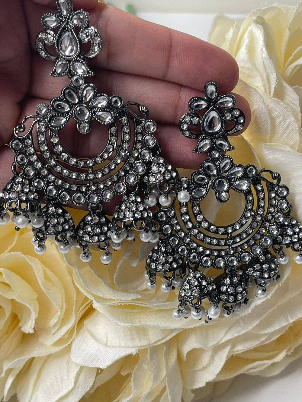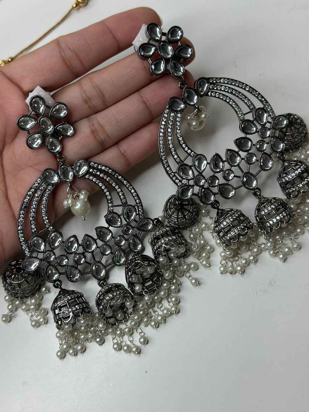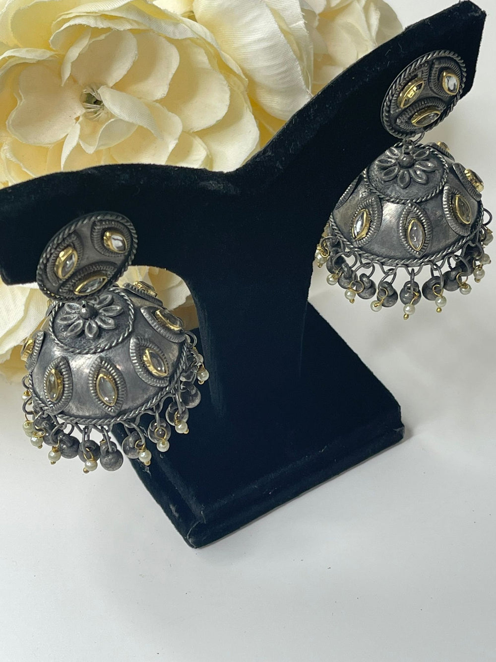 Designer Indian Classical Polki Oxidised Jhumka Earring Set
