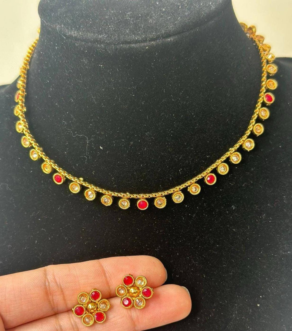 Elegant Polki jewelry set by Izhaar Designs with vibrant gemstones and clear crystals..