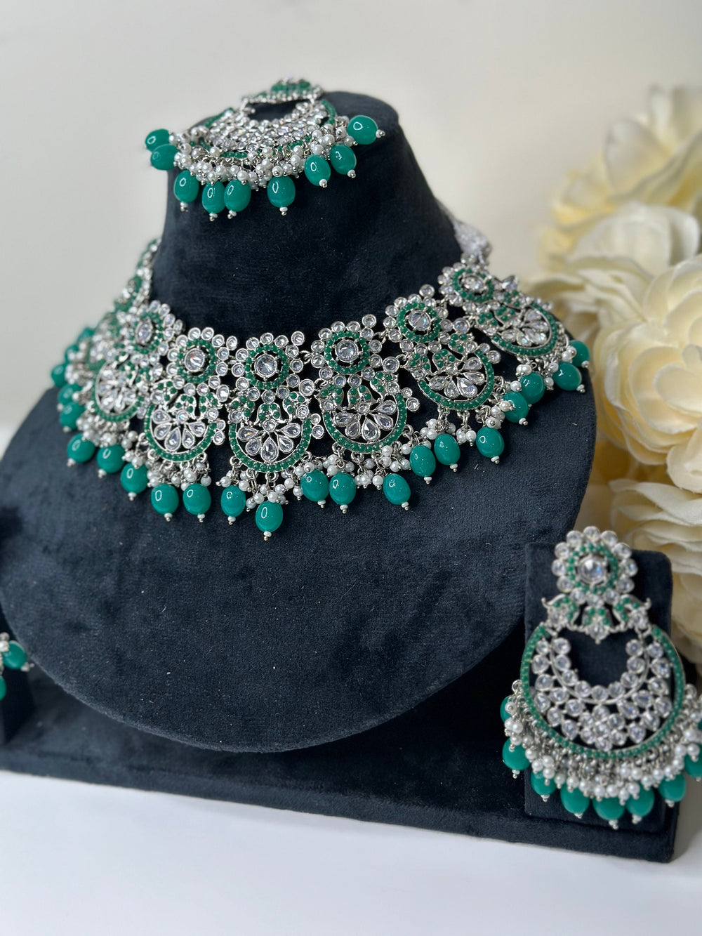 Beautiful Red Color Indian Polki Reverse AD Semi Bridal Set with Earring Tikka, Traditional Jewelry.