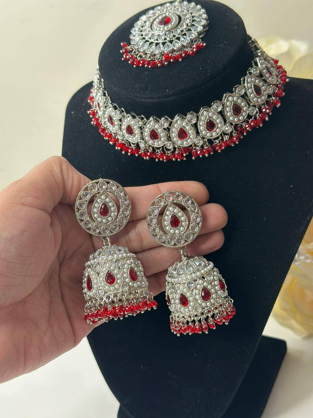 Kiara Maroon Polki Reverse AD Choker Necklace Set