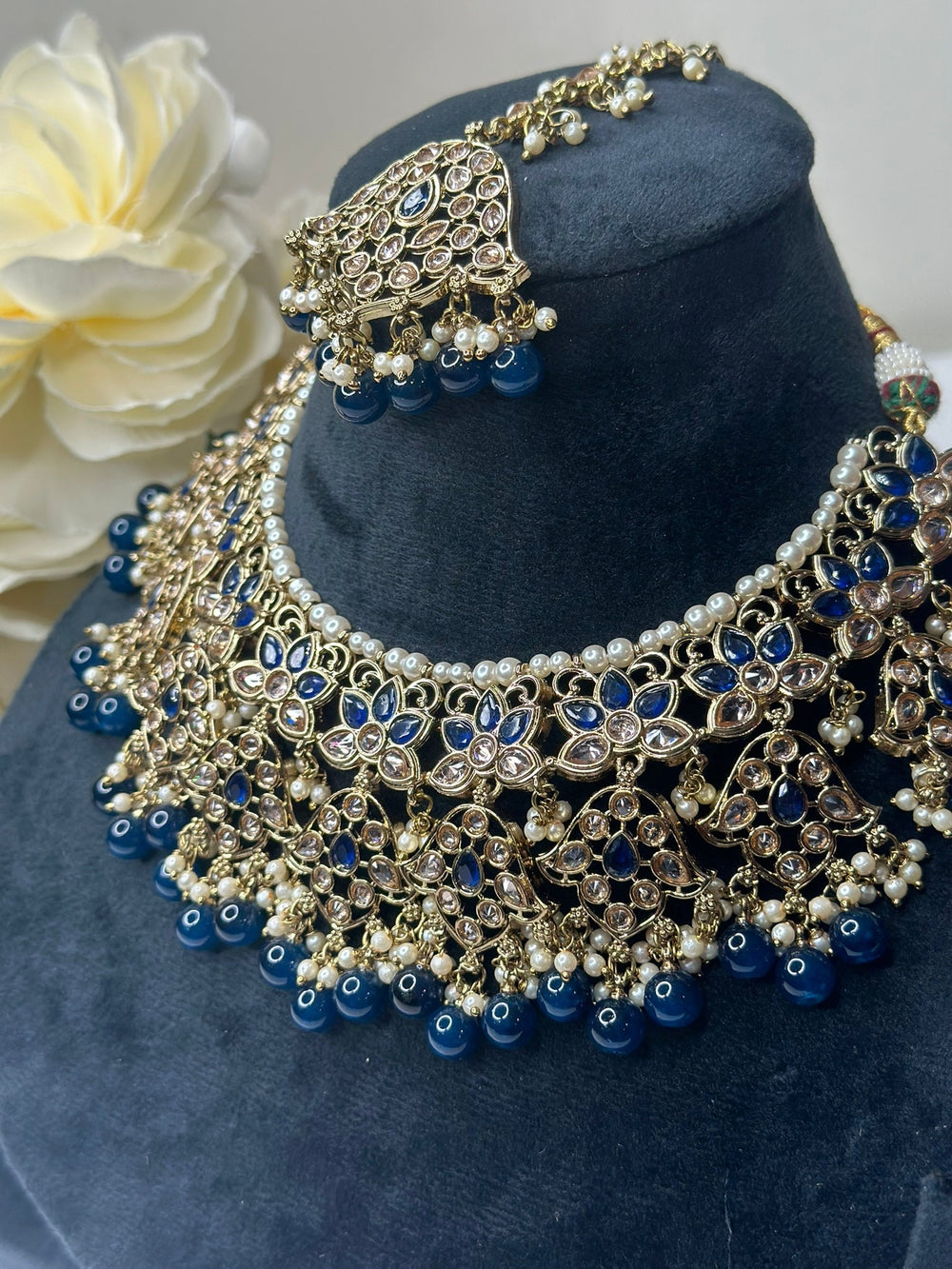 Aditi Gold Blue Polki Reverse AD Necklace Set
