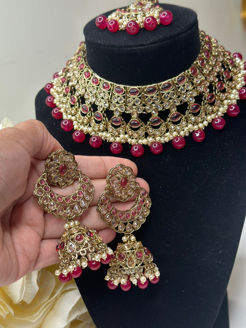 Kiara Pink Polki Reverse AD Choker Necklace Set