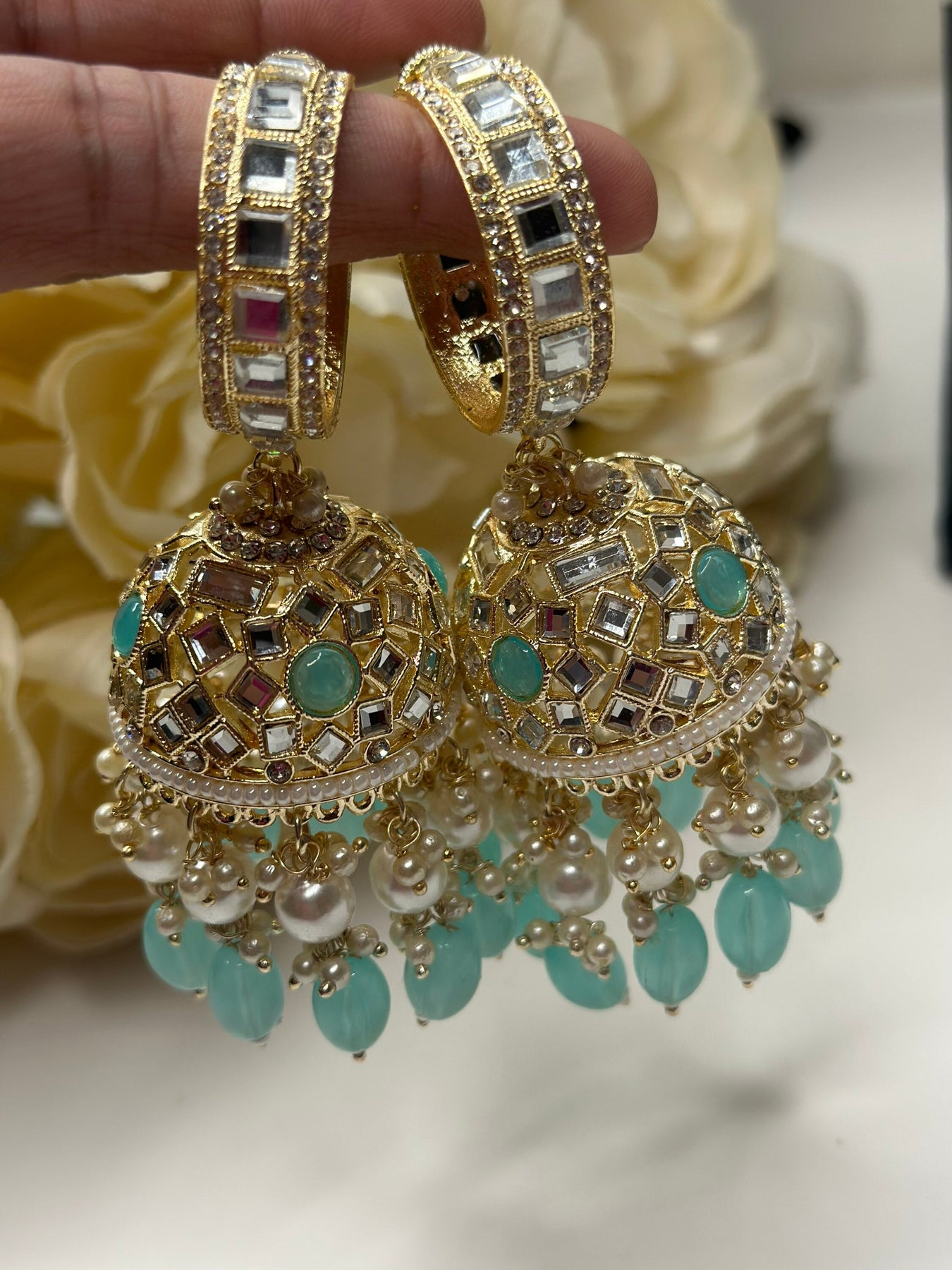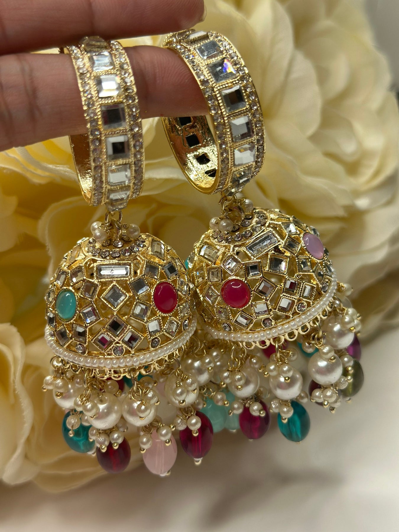 Designer Indian Pearl Jhumka Earrings Set