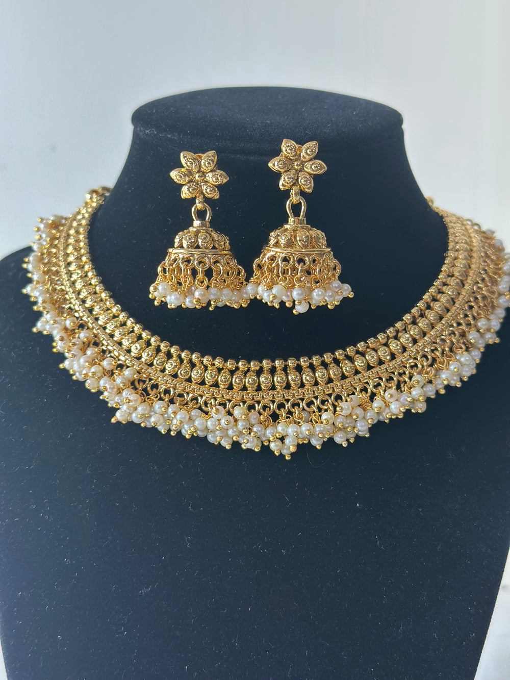 Mehar Gold Reverse AD Pearl Polki Necklace Set