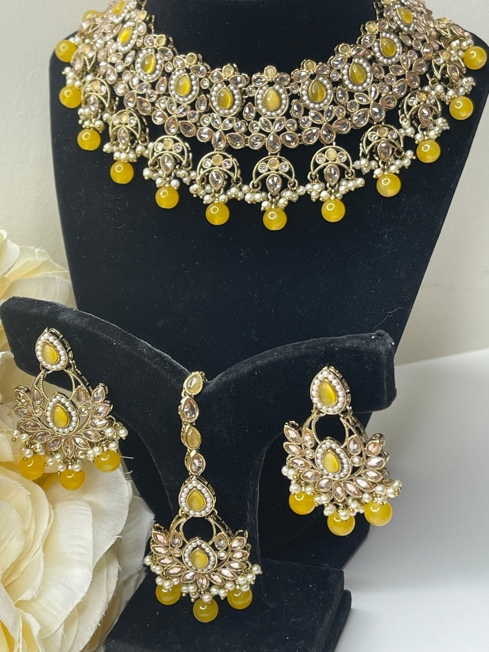 Muskaan Yellow Indian Polki Kundan Necklace Set