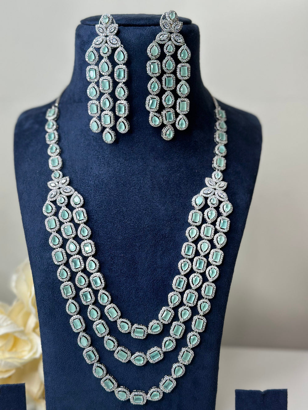 Mallika CZ Blue Necklace Set