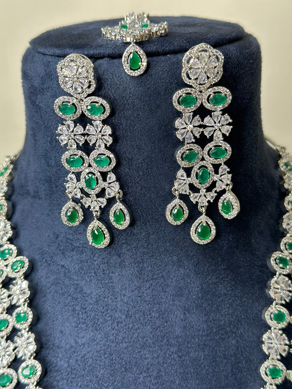 Mallika CZ Green Necklace Set