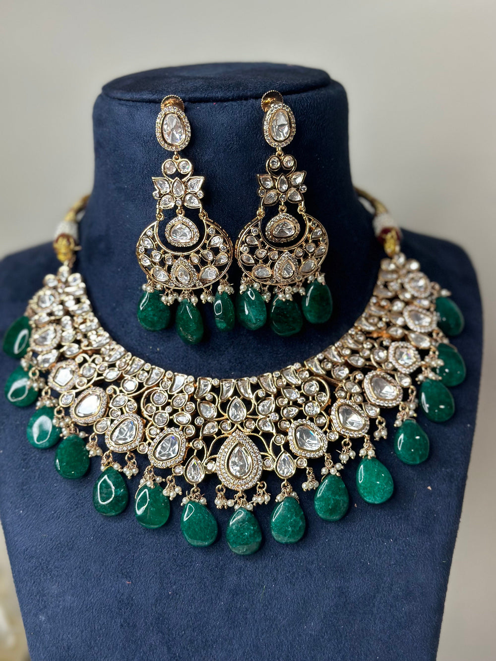 Manaswini Paachi Deep Sky Blue Kundan Necklace Set003