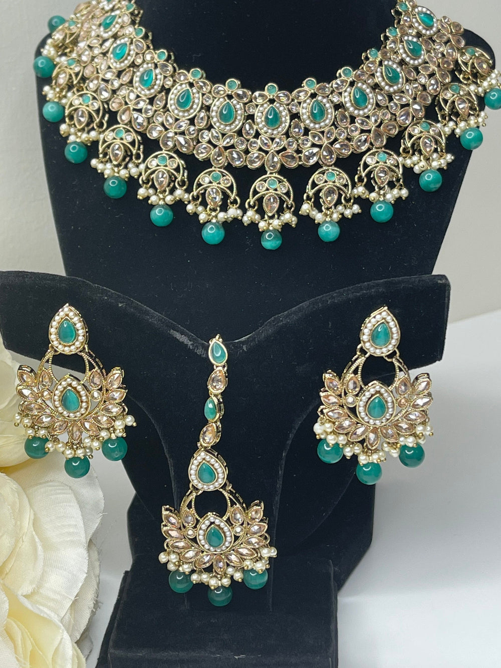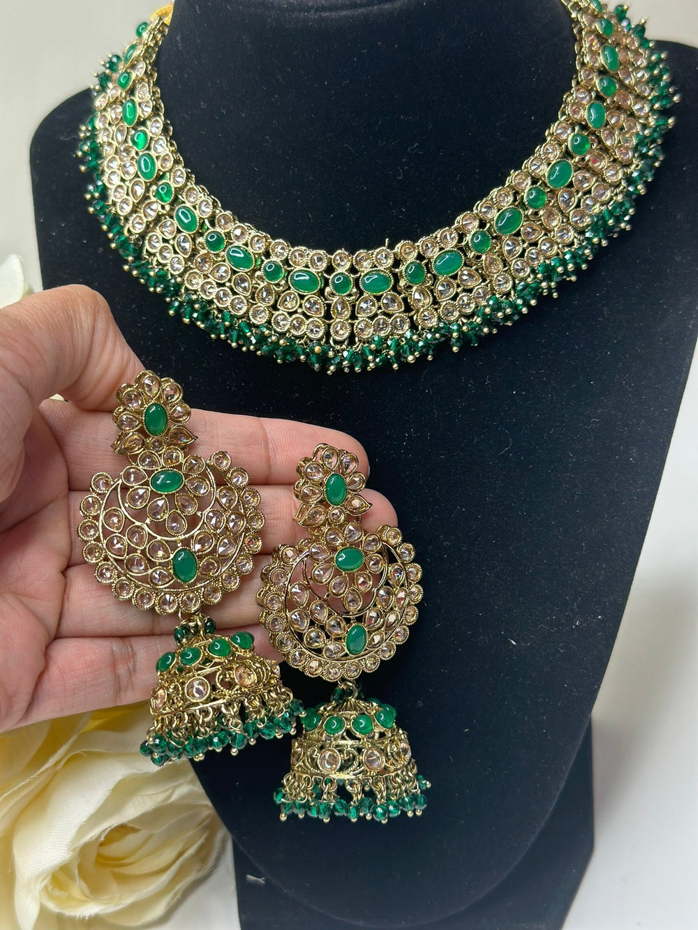 Manya Rama Green Uncut Kundan Necklace Set