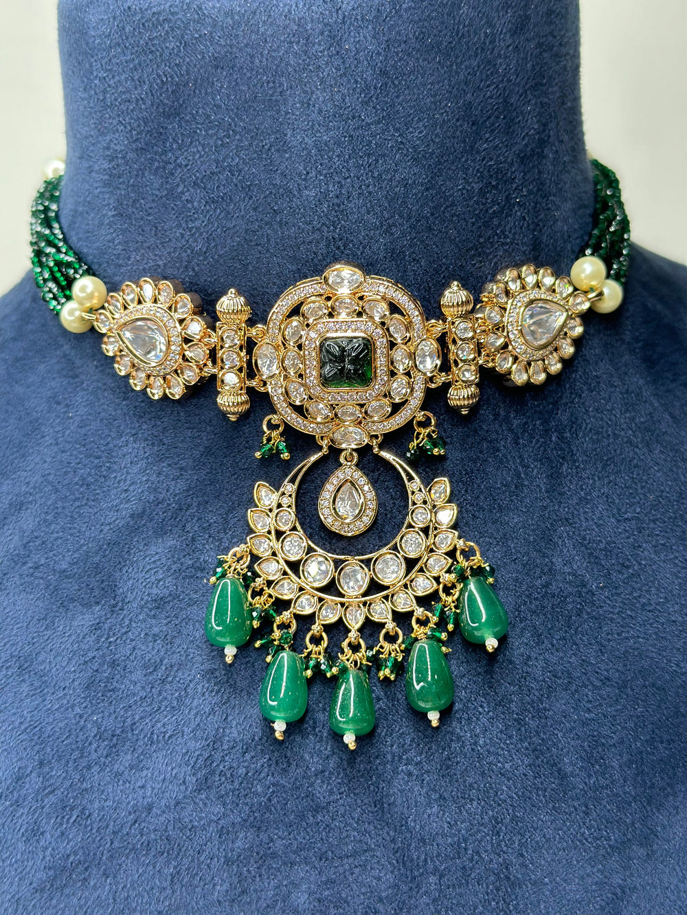 Sabya Inspired Paachi Green Kundan Choker Necklace Set