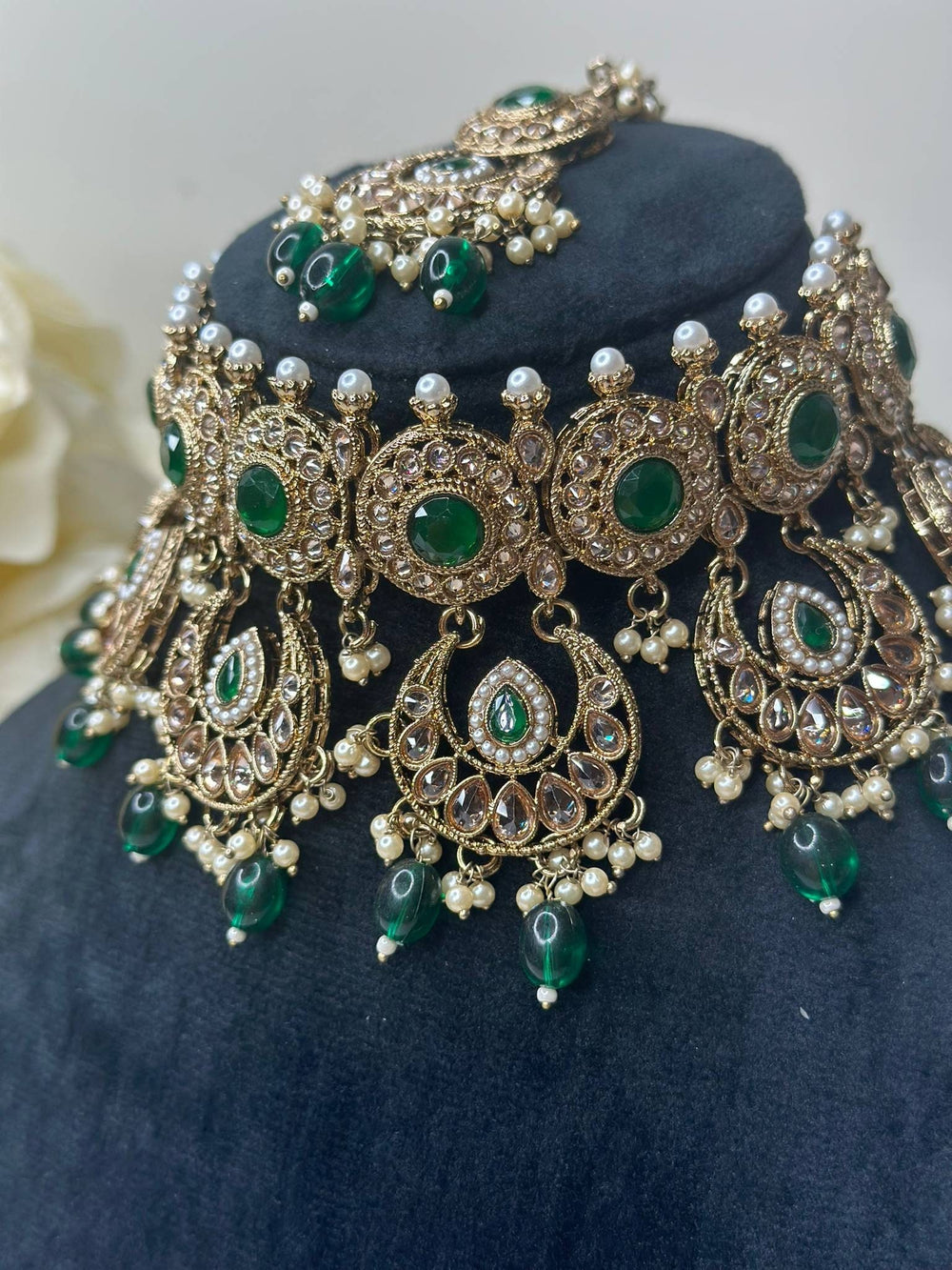 Kiran Green Polki Reverse AD Choker Necklace Set