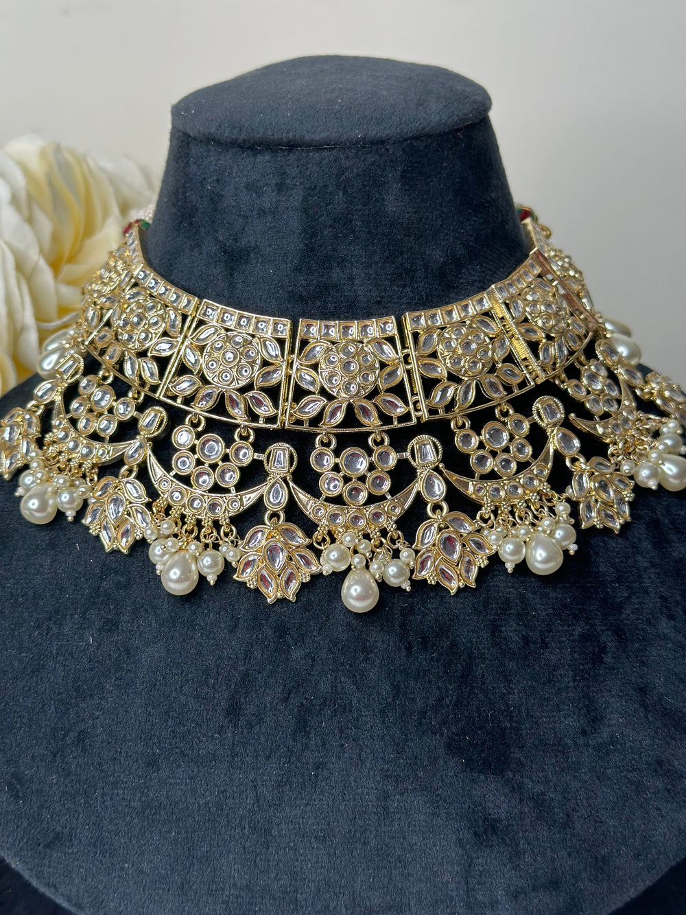 Dahlia Gold White Kundan Choker Necklace Set