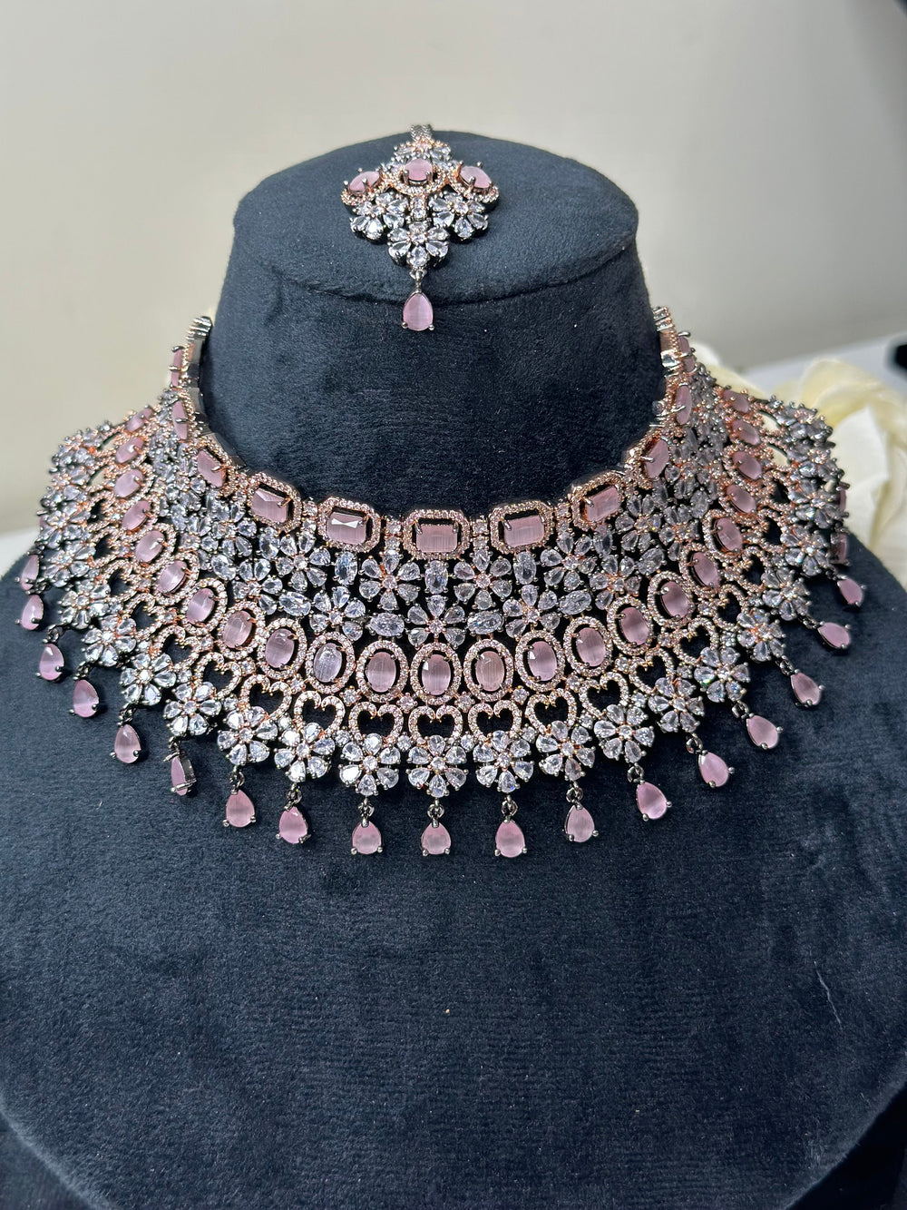 Mahalakshmi Rose Gold Reverse AD Necklace Set
