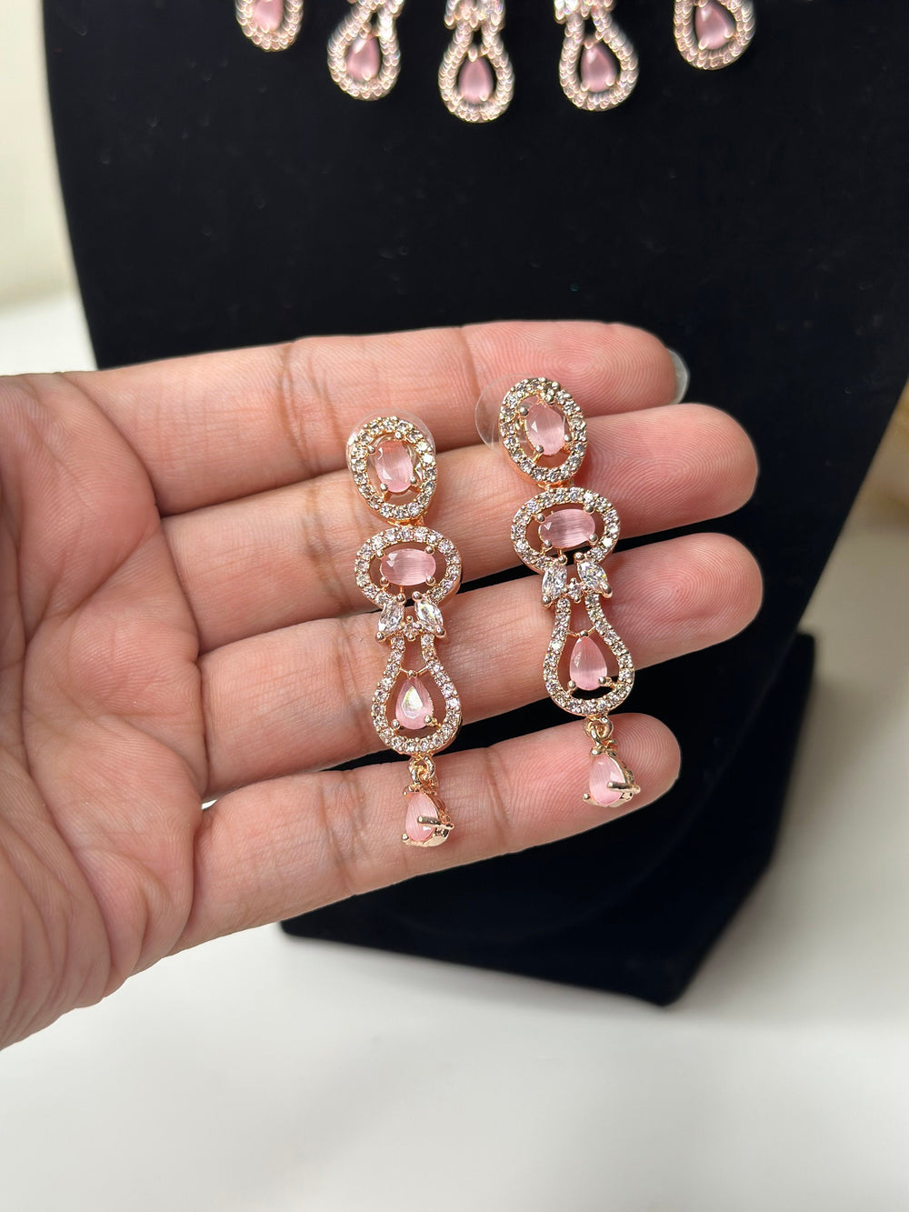 A breathtaking Pink and diamond jewelry set, where fiery red brilliance meets intricate craftsmanship, radiating regal allure and timeless sophistication.