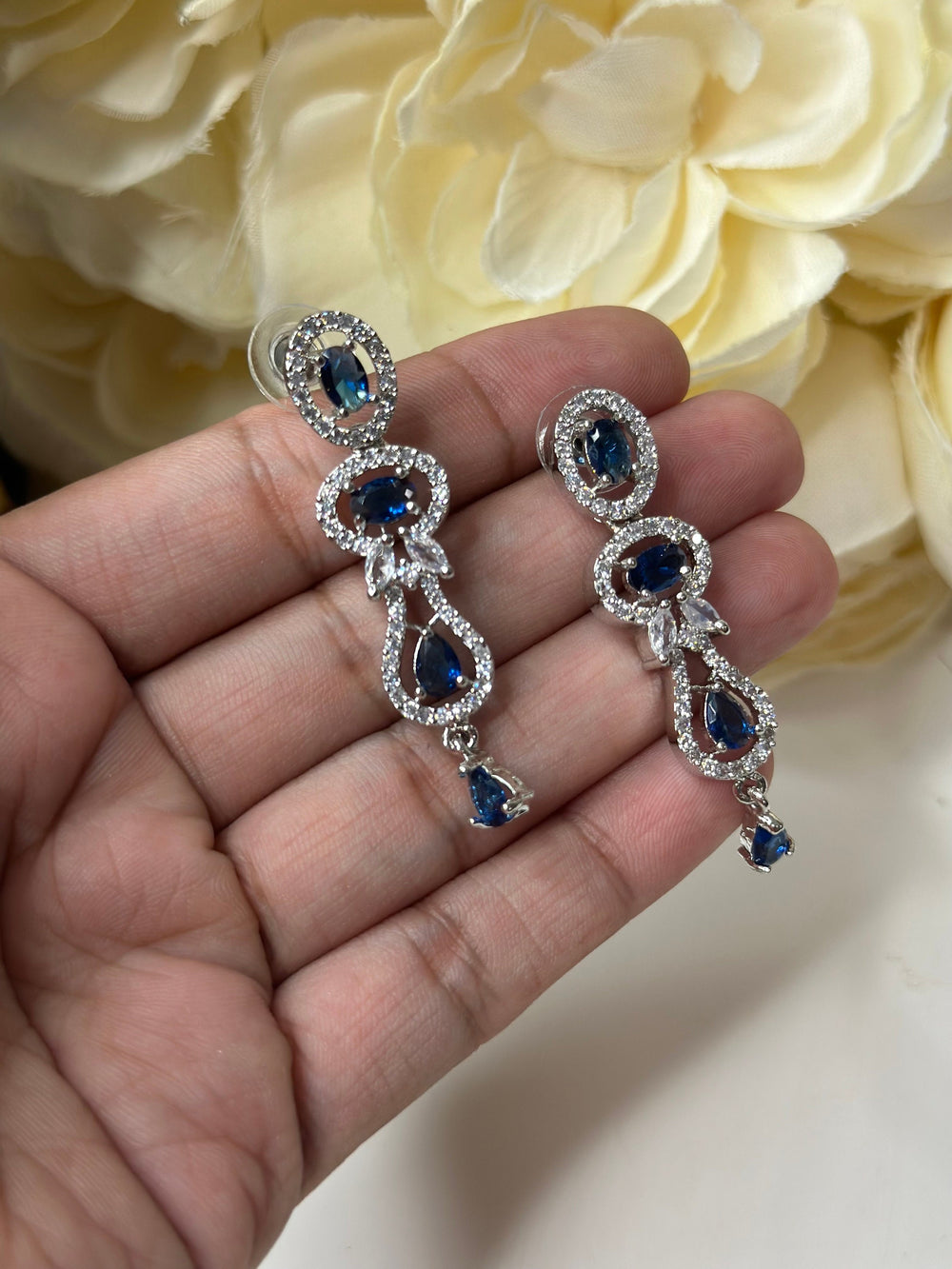 A breathtaking Blue and diamond jewelry set, where fiery red brilliance meets intricate craftsmanship, radiating regal allure and timeless sophistication.