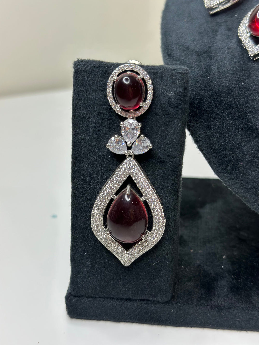 A symphony of vintage charm and modern elegance—this red gemstone ensemble dances with light and whispers luxury in every detail.