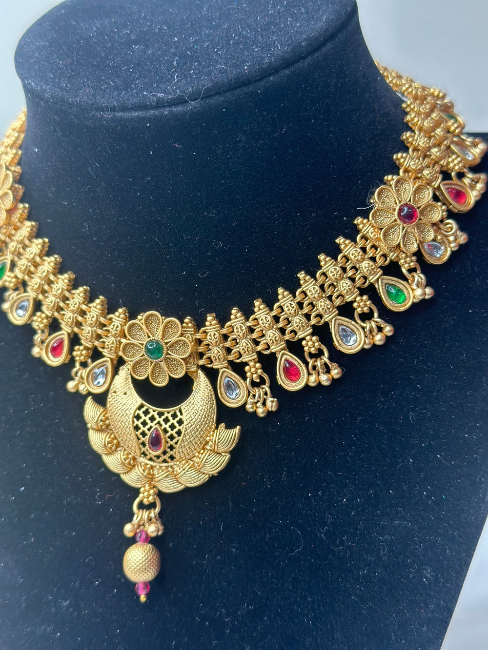 Beautiful Multi-Color Indian Polki Reverse AD Set with Earring, Traditional Jewelry.
