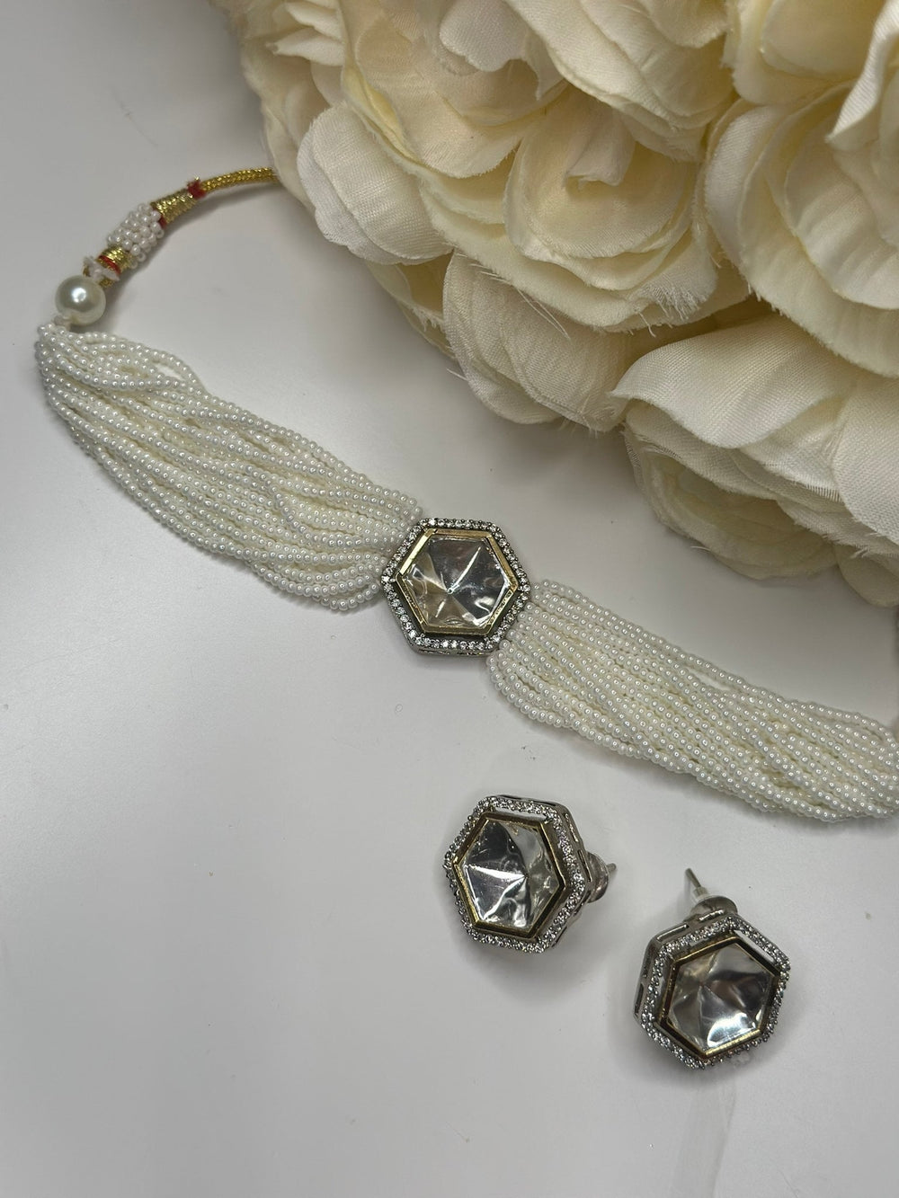Beautiful Indian Paachi Kundan with pearl work, set with earrings, Traditional Jewelry.