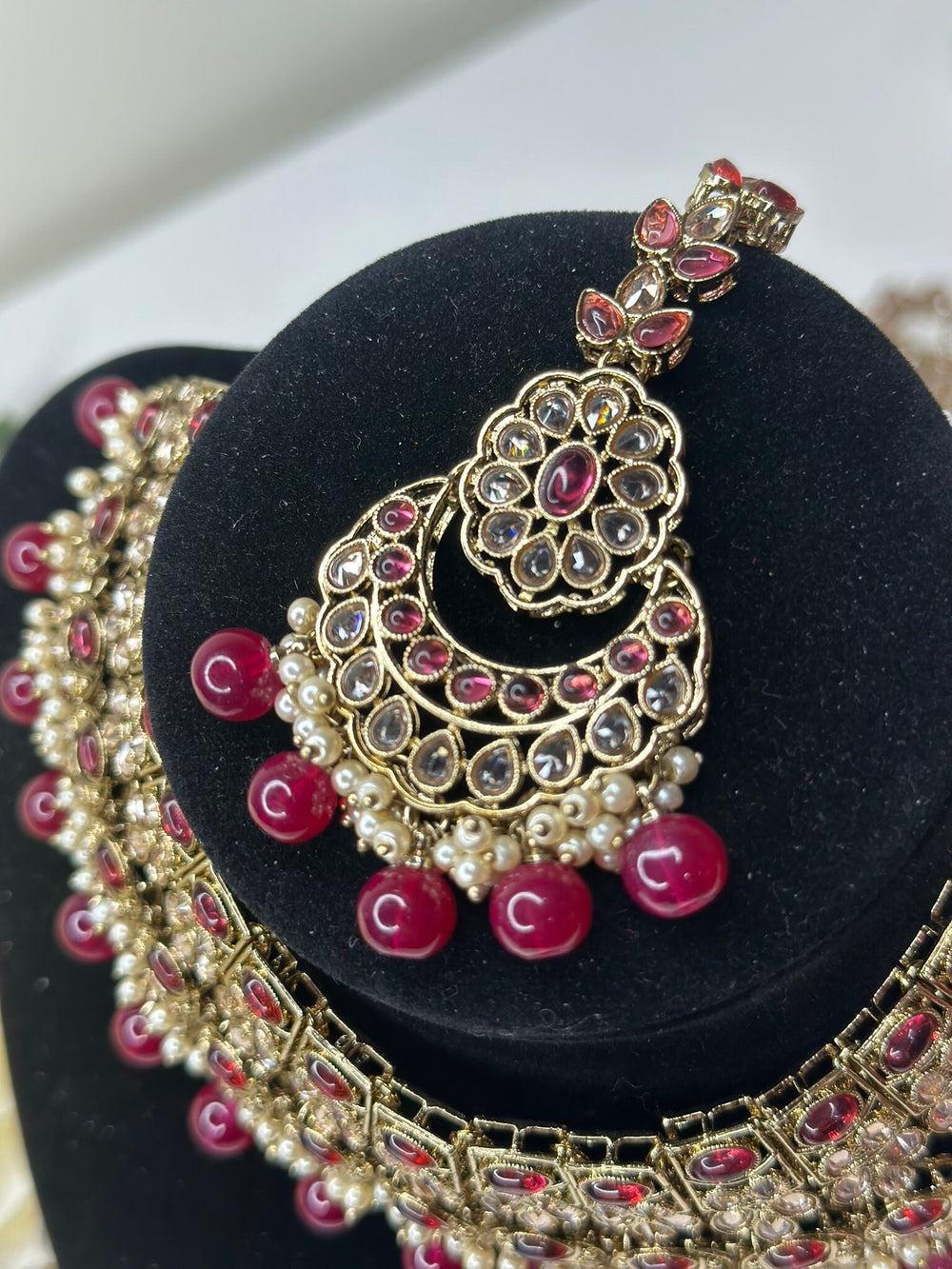 Beautiful Maroon Color Indian Polki Reverse AD Semi Bridal Set with Earring Tikka, Traditional Jewelry.
